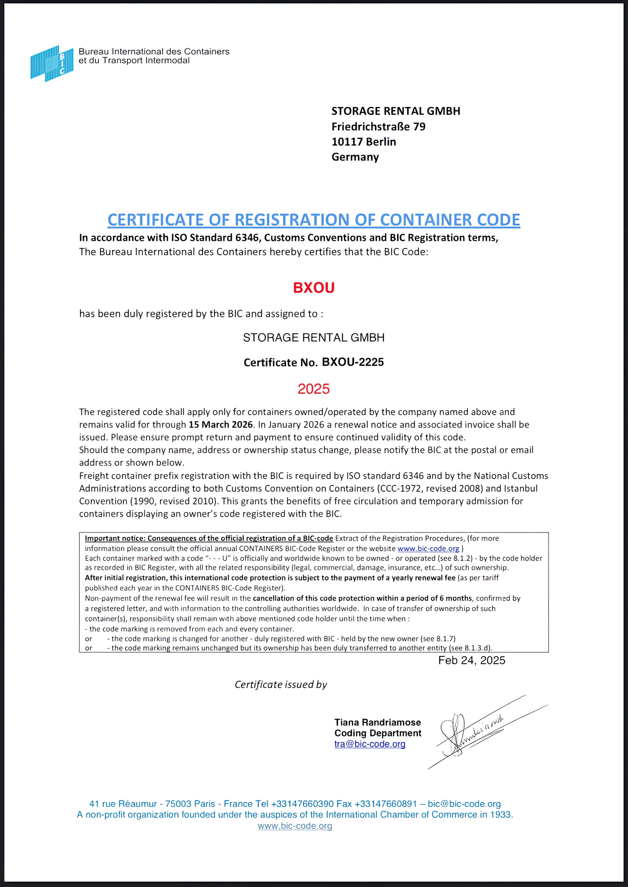 Ja, genau! Bei BOX ONE zahlen Sie erst vollständig, wenn der Container bei Ihnen steht und alles passt. Ohne 100% Vorkasse, ohne Risiko.
